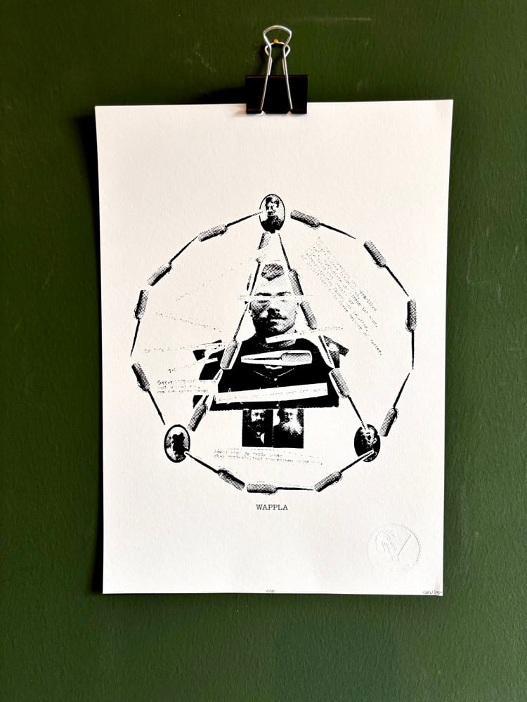 Siebdruck auf Fotokarton (300gsm), 29,7x42cm (DIN A3).